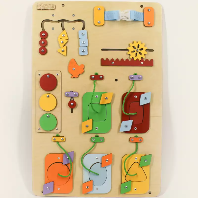 1. Развивающая панель – бизиборд прямоугольный с геометрическими фигурами